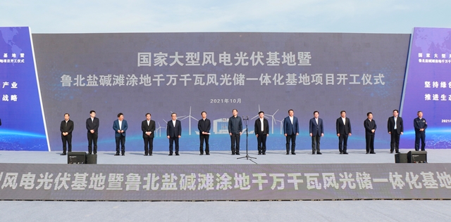 10月28日,國(guó)家大型風(fēng)電光伏基地暨魯北鹽堿灘涂地千萬千瓦風(fēng)光儲(chǔ)一體化基地,首批總裝機(jī)200萬千瓦集中式光伏發(fā)電項(xiàng)目開工儀式在山東海化集團(tuán)300MW光伏發(fā)電項(xiàng)目現(xiàn)場(chǎng)舉行。據(jù)悉,該基地是《生物多樣性公約》第十五次締約方大會(huì)(COP15)領(lǐng)導(dǎo)人峰會(huì)上,宣布的近期開工建設(shè)的首期1億千瓦大型風(fēng)電光伏基地項(xiàng)目之一。