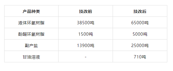 本項(xiàng)目建成后,德源將年產(chǎn)雙酚A型環(huán)氧樹脂6.5萬噸、酚醛環(huán)氧樹脂5000噸。項(xiàng)目技改前后,德源產(chǎn)品產(chǎn)能變化情況如下表: