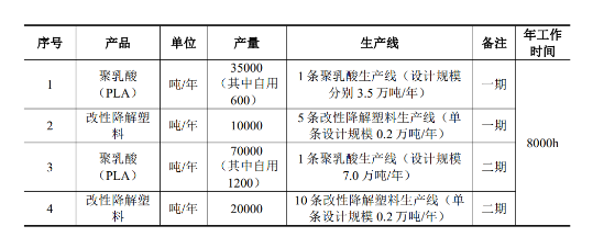 除10.5萬噸噸聚乳酸產(chǎn)能外,兩期還計劃生產(chǎn)3萬噸改性可降解塑料(1萬噸+2萬噸)。根據(jù)環(huán)評文件,本項目改性可降解塑料產(chǎn)品為熱塑性可生物降解PBAT和PLA共混纖維,可用于吹膜、注塑、泡罩等加工領域。