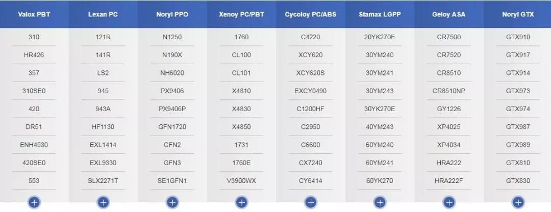 3.NorylPPO:此系列結合了PPE樹脂的固有優點,擁有較高的耐熱性能、良好的絕緣性、優異的水解穩定性、良好的尺寸穩定性和優異的加工性能等等;