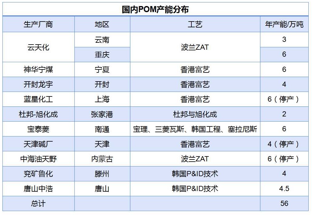 表2 國內POM產能分布