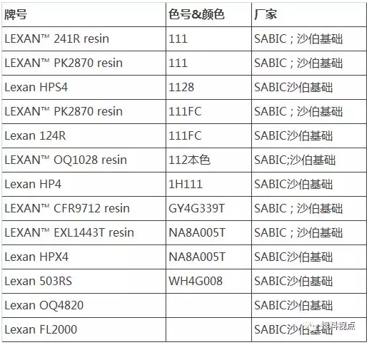 ◆搜料網(wǎng)(www.kanyidian.cn)整理【聚碳酸酯PC】原產(chǎn)美國的常用型號如下 ▼