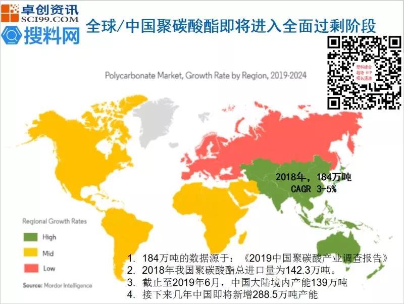 根據(jù)《2019中國聚碳酸酯產(chǎn)能調(diào)查報告》2018年國內(nèi)聚碳酸酯總產(chǎn)能達(dá)到184萬噸,在有龐大產(chǎn)能的同時2018年聚碳酸酯PC總進(jìn)口量為142.3萬噸,國內(nèi)的聚碳酸酯依舊存在缺口,截止2019年6月,中國大陸境內(nèi)產(chǎn)能有139萬噸。