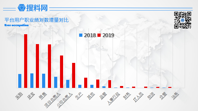 2019年,銷售研發用戶占比雖較2018年下降1%,但用戶數量增長超過100%,并不影響整體構成比例,是高頻使用塑料互聯網的用戶類型