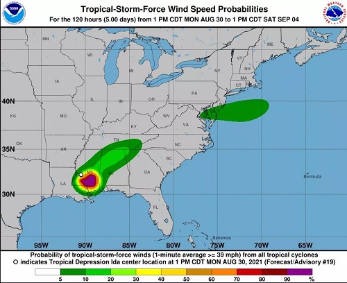 颶風”艾達”IDA風力及行進路徑(美國國家颶風中心)