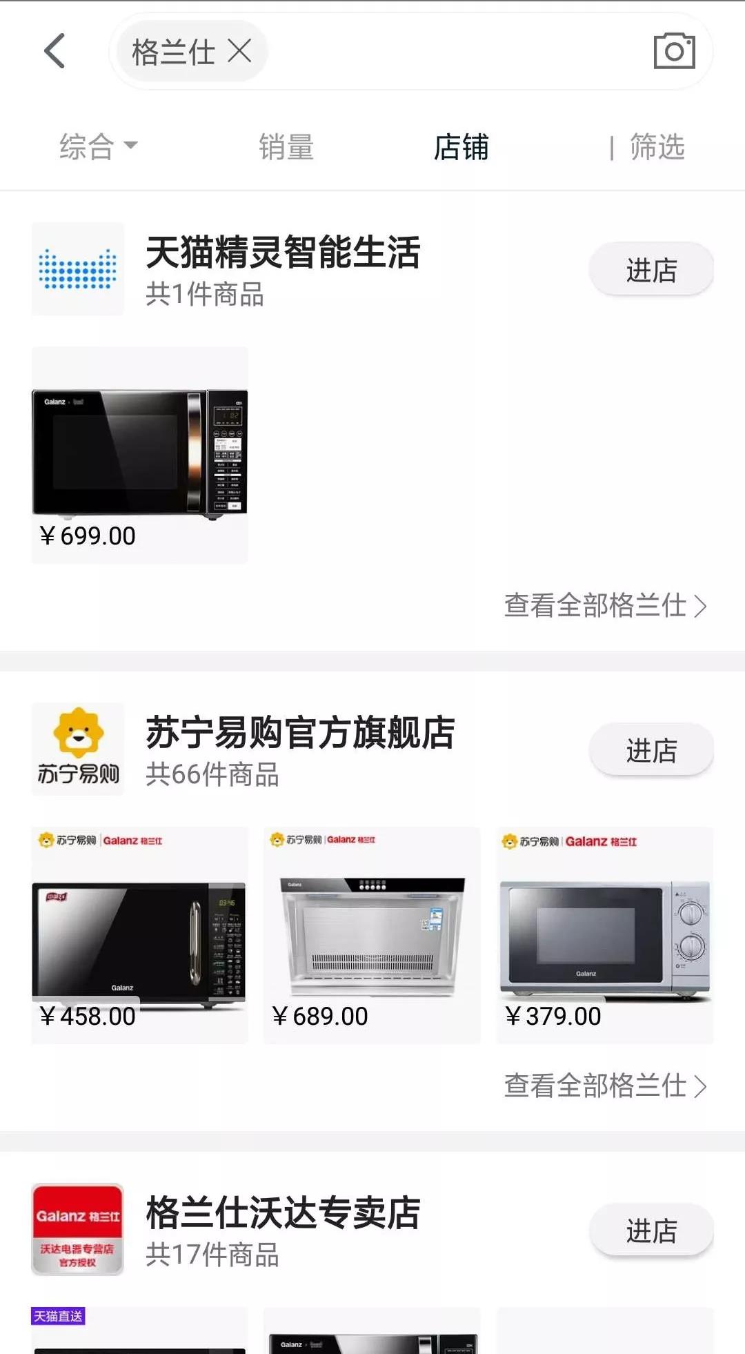 很多人看到這個(gè)聲明后可能第一時(shí)間會(huì)天貓搜索“格蘭仕”,然后發(fā)現(xiàn)明明搜的到呀。
