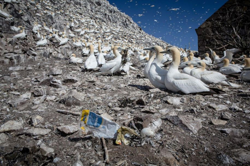 門窗巖,塘鵝與塑料垃圾。有研究表明,有90%的海鳥吞下完塑料。