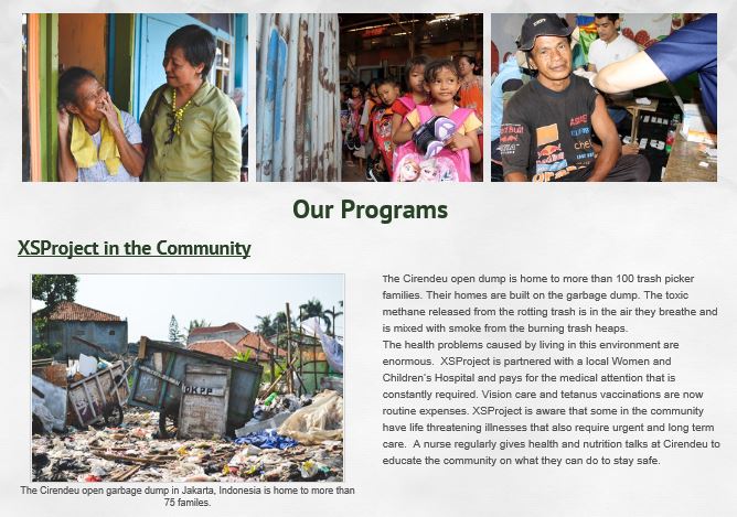 XS計(jì)劃收益的三分之一來(lái)源于商品銷售,一般手拎袋以Mari Pergi品牌名字市場(chǎng)銷售,本地巴哈薩印度尼西亞語(yǔ)的意思是"讓它去吧",價(jià)錢從15美元到30美元不一。與其他商品一道,可根據(jù)XS計(jì)劃的網(wǎng)站出售。