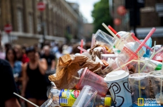 倫敦東區(qū)的紅磚頭巷銷售市場(chǎng),廢棄物早已從垃圾箱中溢出來了。在這個(gè)每星期一次舉行營銷活動(dòng)的街邊,塑料吸管從大堆的廢棄物中戳出去。