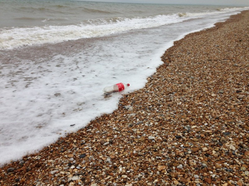 挨近美國肯特郡鄧杰科維奇的海灘上的可口可樂塑料瓶。在全世界,PET塑料瓶及瓶塞是被沖到海灘最普遍的物件之一。每分都是有等同于一貨車載貨量的塑料垃圾被倒進海洋,而每一秒鐘,就會有3400個可口可樂公司塑料瓶被丟棄。這類環境污染不僅不好看,另外也對海洋自然環境導致了受到破壞。