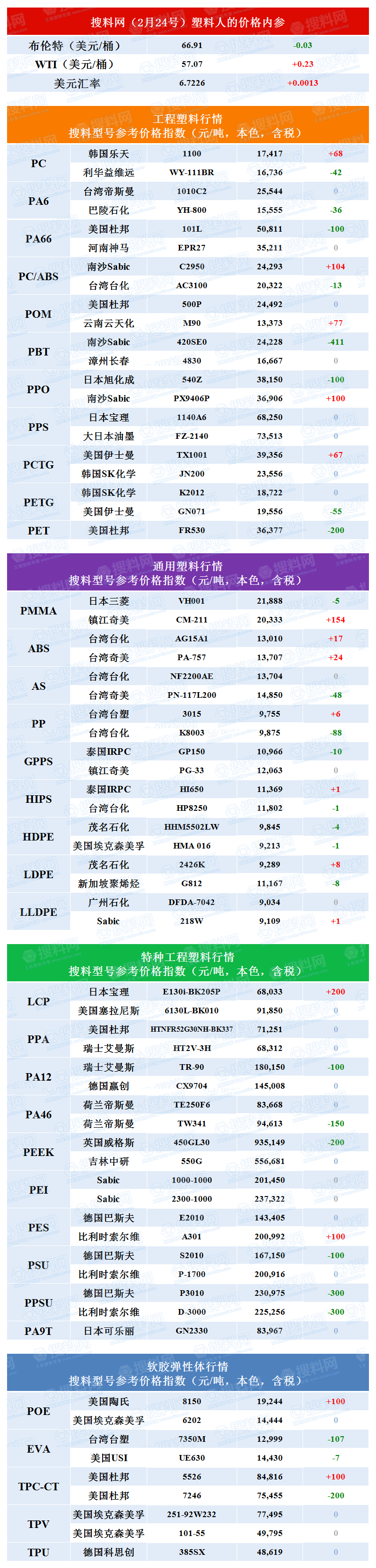 2.提供各個產品牌號上游單體價格;