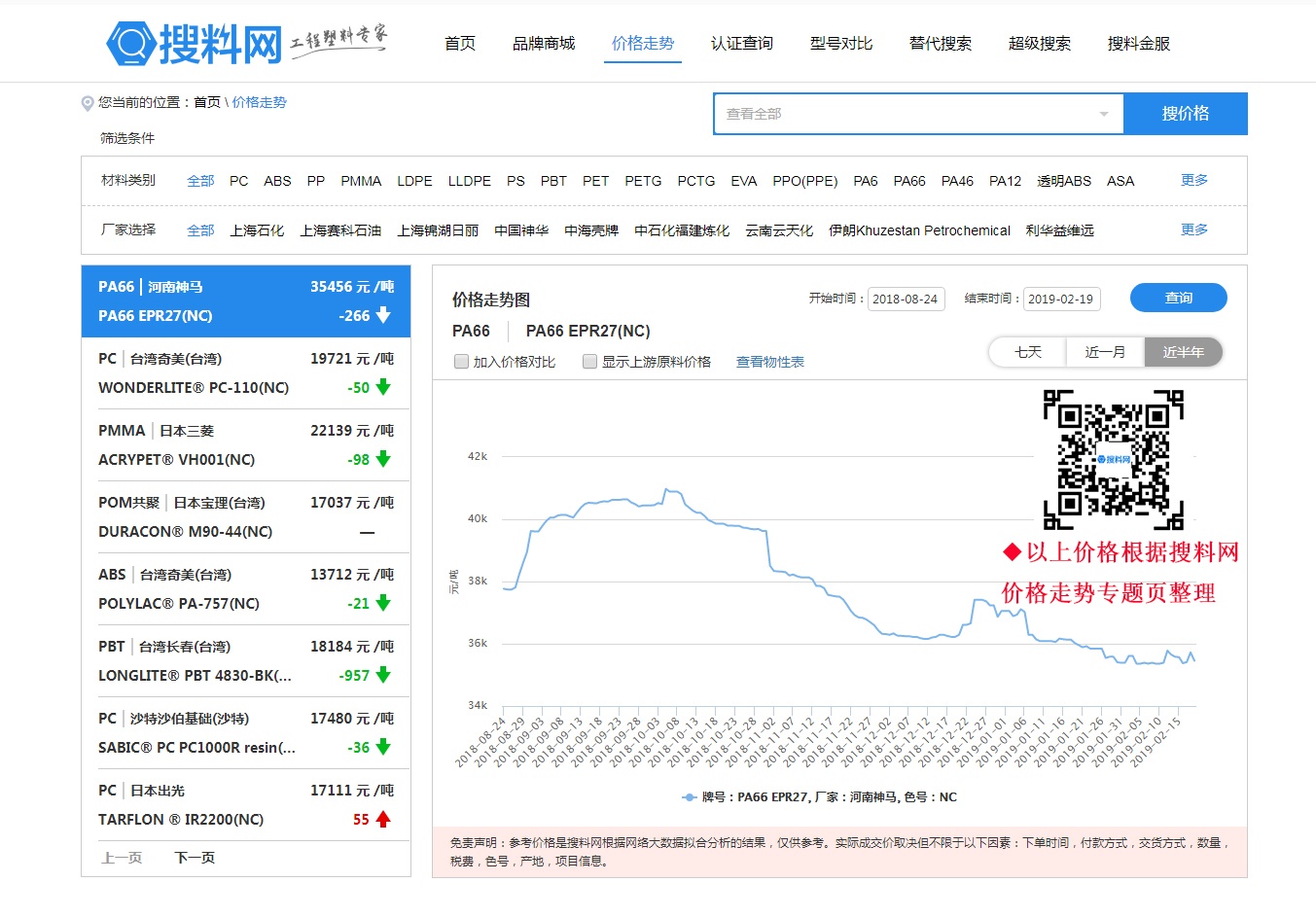 3.可以選擇其他牌號產品與當前產品進行價格比對