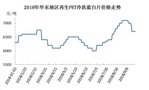 8月中旬開始,聚酯下游工廠在高成本壓力下部分被迫停產,進入9月,又一部分工廠停產、減產,上游PTA庫存明顯堆積,價格一路下行,再生PET產品近期毫無疑問的主流下行,華東地區冷水藍白片不含稅價自8月份漲至最高價7100元/噸后,下滑至目前6700元/噸,下滑400元/噸。據金聯創了解,目前山東、河北冷水藍白片低價位在6400元/噸,河南地區冷水藍白片在6300元/噸。此次價格下調,或將會持續一段時間,金聯創了解到華北、華東部分化纖廠表示,由于前期價格上漲影響,使得場內庫存高位,近期高庫存消化緩慢,部分廠家目前停收瓶片,初步計劃十月一假期之后恢復正常。