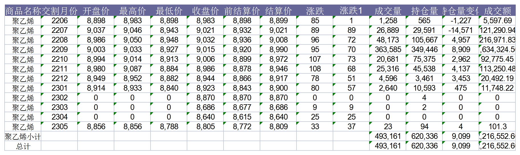 大連商品交易所6月1日PE行情表
