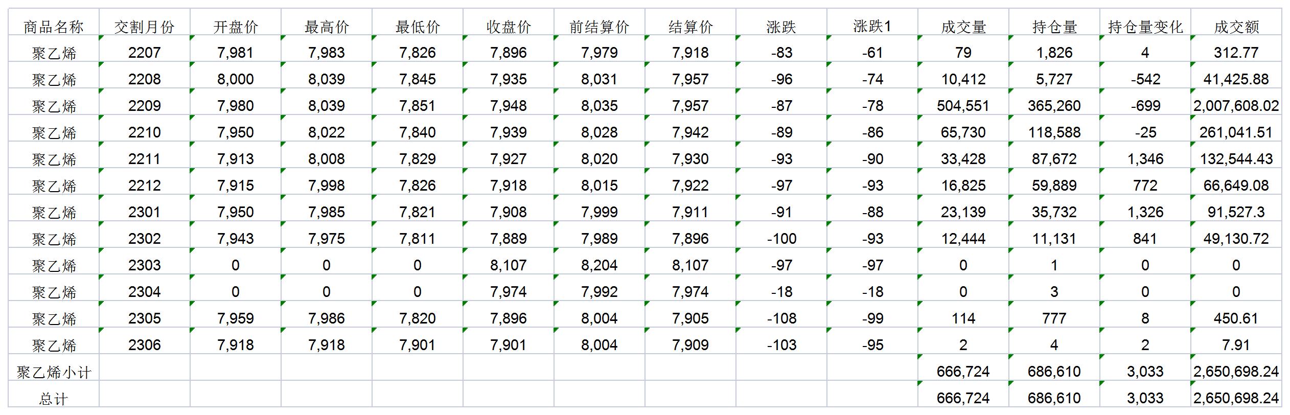 大連商品交易所7月13日PE行情表