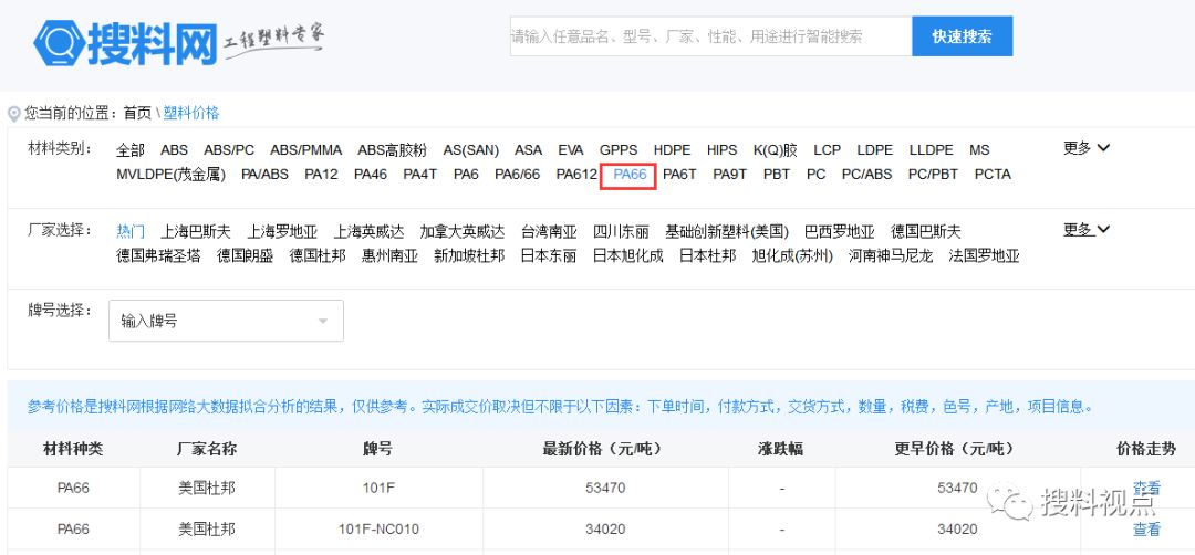 以下是搜料網的【www.kanyidian.cn】的【塑料價格】頁面截圖(可查最近十年價格走勢)