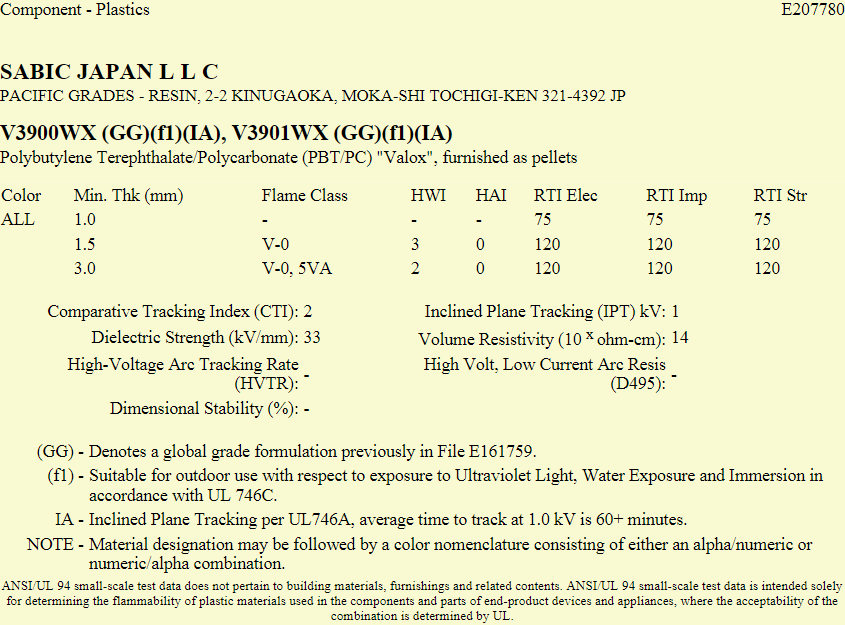樣例:沙伯基礎(chǔ) LEXAN™ HF1130
