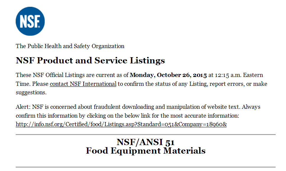 認(rèn)證機(jī)構(gòu):美國全國衛(wèi)生基金會(huì)