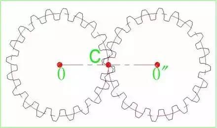 兩齒輪廓無論在哪里觸碰,過點接觸所做的兩嚙合齒輪的公法線,務必與二輪心連心線交叉于一點“C”,那樣才可以確保齒輪的瞬時速度傳動比不會改變。將全部“C”點連起來就變成兩個外切圓,稱作分度圓,分度圓圓心距即齒輪圓心距。詳細下面的圖