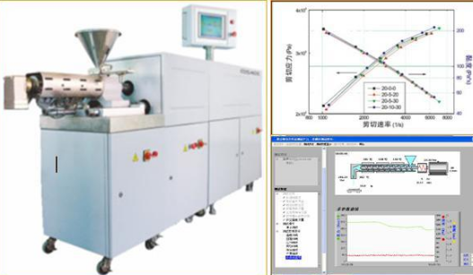 根據客戶要求,選擇溫度,剪切速率等參數。在剪切掃描中,熔融的塑料通過毛細管擠出,并確定在不同剪切速率下的力。為了確定熱穩定性,在擠出機的桶中經過不同的停留時間后,將熔融的塑料通過毛細管擠出。