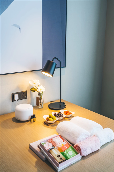 3.床邊小桌子,可使用網易嚴選的香薰機、臺燈、水果擺盤、花瓶、毛巾等。
