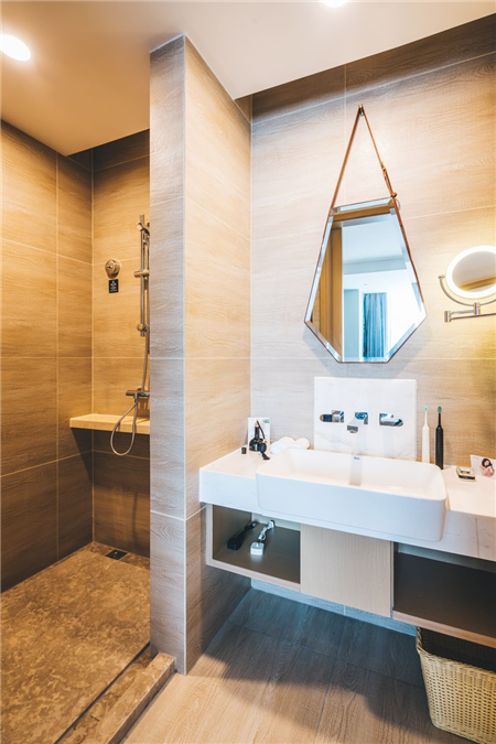 4.衛生間一角,擺放著網易嚴選的洗護用品。