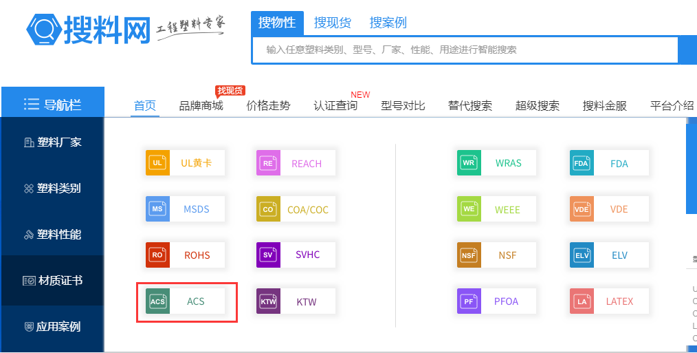 如果您想查詢現在所用的牌號是否符合ACS認證,就上搜料網