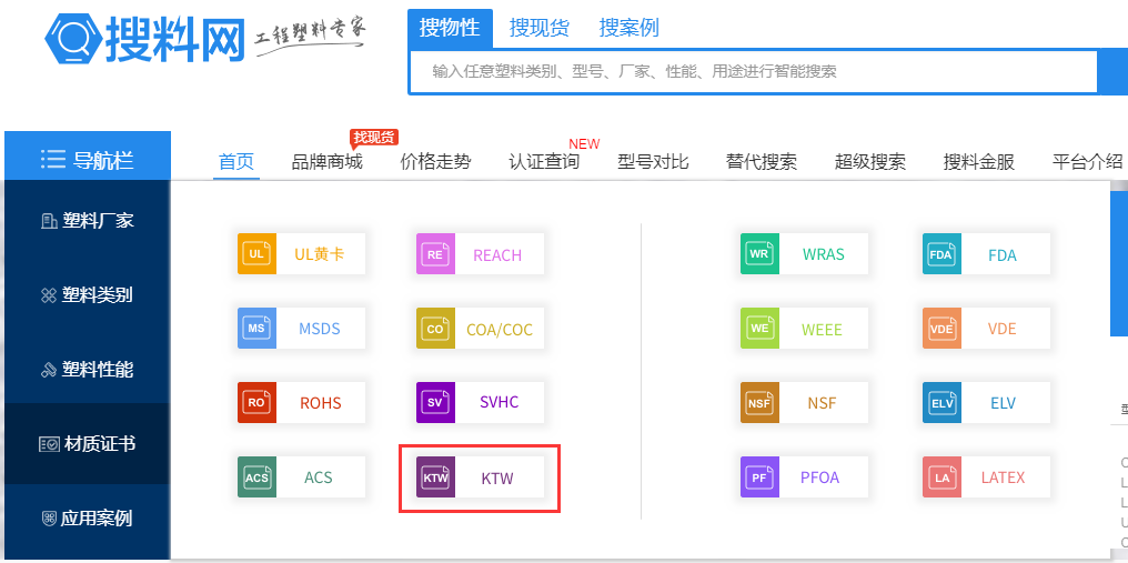 如果您想查詢現(xiàn)在所用的牌號是否符合KTW認(rèn)證,就上搜料網(wǎng)。