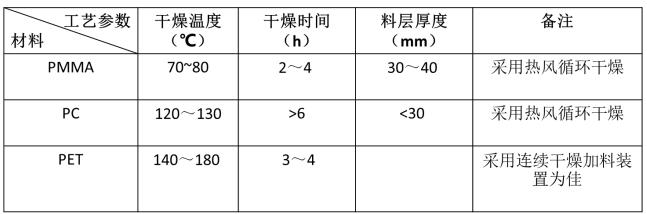 (1) 原料的準備與干燥 由于在塑料中含有任何一點雜質,都可能影響產品的透明度,因此和儲存、運輸、加料過程中,必須注意密封,保證原料干凈。特別是原料中含有水分,加熱后會引起原料變質,所以一定要干燥,并在注塑時,加料必須使用干燥料斗。