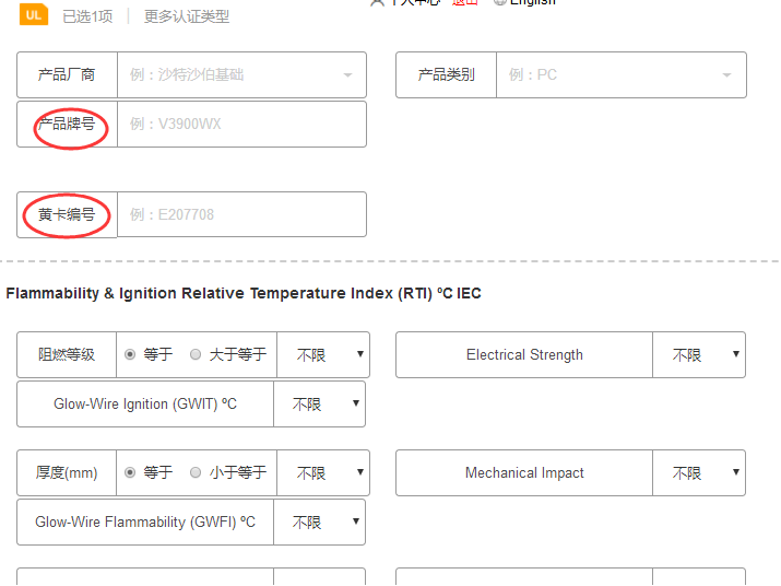 3.或者輸入你知道的UL編號,廠家、牌號、類別,就可以查看對應的黃卡數據。