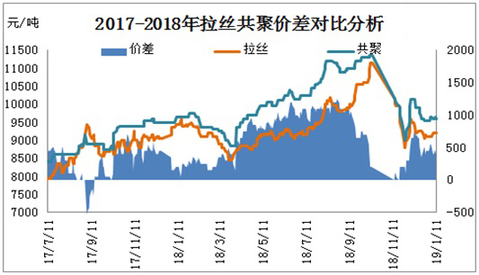 由2017-2018年拉絲與共聚價差對比分析發現,2017年下半年兩者價差收窄階段,且此階段受環保督查政策影響,下游制品中小型企業因環保政策影響,停工或者將負荷居多,減緩原料需求力度。2018年下游行業經歷環保督查階段后,產業鏈發展逐步恢復健康狀態,下游需求逐步恢復,2018.5-11月份兩者價差再度擴大,主因神華寧煤、大慶煉化等裝置檢修,同時各大石化共聚資源供應相對減弱,加劇共聚與拉絲價差擴大化。
