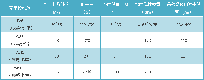 表 吸水能力對尼龍力學性能危害