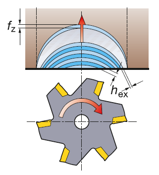 當銑刀的切入角低于90°時,因為切削變軟,軸徑切削薄厚會低于 銑刀的走刀率,則銑刀切入角將對其可用的每齒切削速度造成非常大的危害。