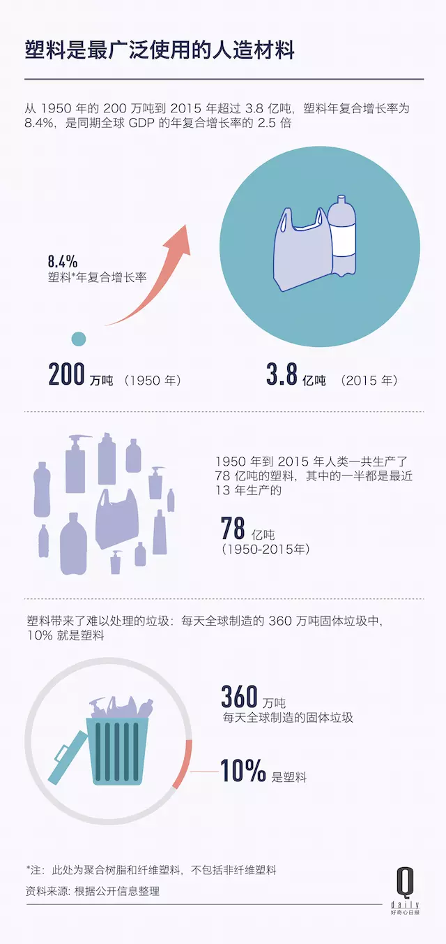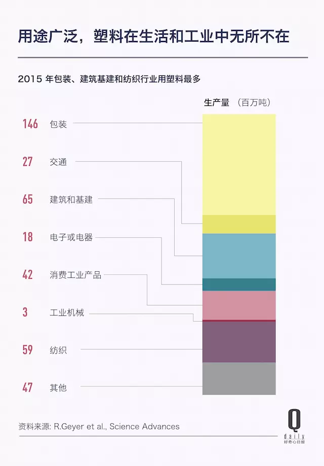 作為最廣泛使用的人造材料,從你喝的瓶裝水、合成材料的服裝、手機殼、超市的購物袋、保鮮膜、家電和房屋建造中這些都有塑料。