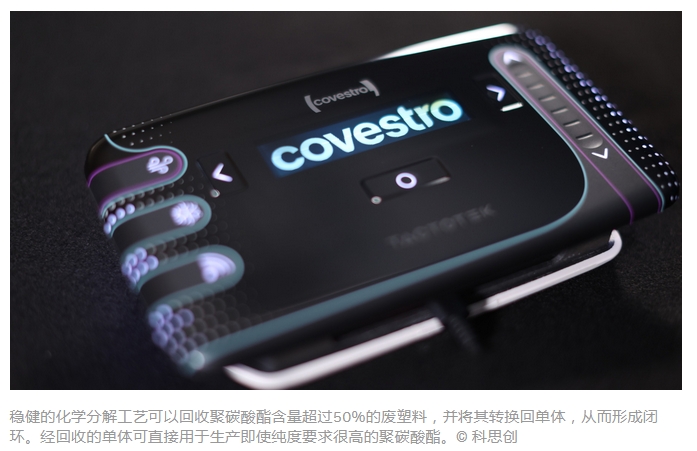 科思創首席技術官戴思騰博士(Dr. Thorsten Dreier)表示:“作為聚碳酸酯等塑料的生產商,我們自然對這些重要材料的使用,包括其制品在壽命結束時的處理負有責任。我們的優勢在于:我們了解我們的產品是如何設計的,因而能夠有針對性地開發相對應的回收解決方案。我們負責開發聚碳酸酯化學回收工藝的同事再次證明了未來實現閉環是完全可能的。我們需要將廢棄塑料視作資源和替代性原材料,進行重新利用,以形成閉環。”