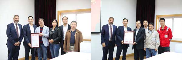 igus中國地區執行總經理毛建黨老先生各自為APMT和ZPMC授予VIP獲獎證書。