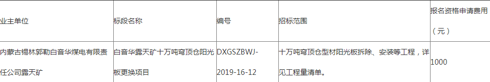 國家電投集團內蒙古能源有限公司白音華露天礦十萬噸穹頂倉陽光板更換項目招標公告