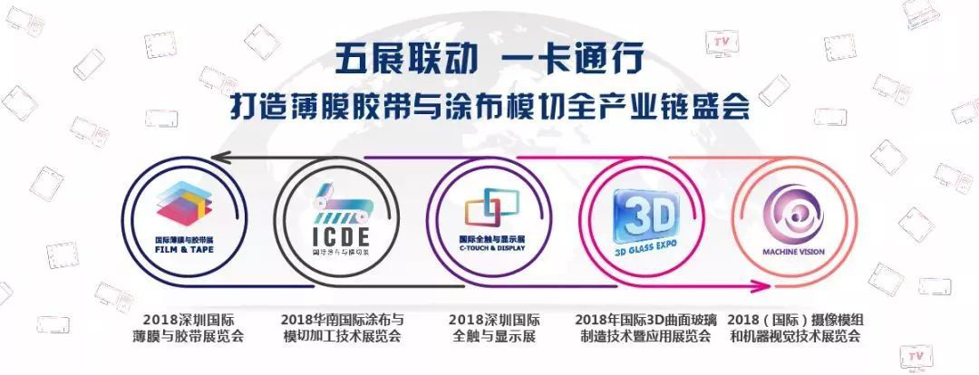 2018深圳國際薄膜與膠帶展覽會(FILM&TAPEEXPO)和2018華南國際涂布與模切加工技術展覽會(ICDE)提供從材料、設備、方案到研發制造,集中為電子光學、觸控顯示、印刷包裝、汽車醫療、五金家電、鋰電新能源提供完善的解決方案,匯聚來自電子行業,家電行業、塑膠行業、印刷行業、醫療行業,汽車行業等專業買家,洞察新品趨勢同時,實現供需雙方深度交流零障礙。