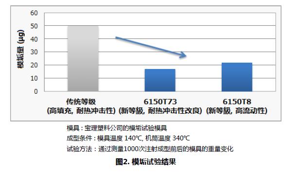 2.低逸氣(低模垢)特性 ※低逸氣=LowOutgassing殊不知,這種歷經(jīng)耐高溫沖擊性特性改進后的級別,會造成許多由增韌劑來歷的汽體而造成的模垢,造成 模貝維護保養(yǎng)頻率提高的難題。此外,隨著商品的輕巧化,對高些流通性原材料的要求越來越大。殊不知,提升流通性和提高延展性以授予耐高溫沖擊性,一般 是本末倒置的二項規(guī)定。因而,大家以往一直覺得,設(shè)計方案兼顧高流通性和耐高溫沖擊性的PPS原材料非常艱難。近期,本企業(yè)對PPS分子結(jié)構(gòu)及其各種各樣防腐劑開展分配,并對混和技術(shù)性開展改進,總算攻破了所述課題研究,開發(fā)設(shè)計出新式高添充高韌性級別的DURAFIDEPPS6150T73及6150T8。DURAFIDEPPS6150T8改進了高流通性和耐高溫沖擊性,DURAFIDEPPS6150T73具備高些的耐高溫沖擊性,并且二者均具備低逸氣(低模垢)的優(yōu)勢,有希望在普遍行業(yè)及不同產(chǎn)品中獲得 運用。圖2為模垢,圖3顯示信息流通性與耐高溫沖擊性間的關(guān)聯(lián)。 如上所述,DURAFIDEPPS的新式高填充高韌性級別組,具備出色的抗沖擊、耐高溫沖擊性 能,是兼顧高流通性及低逸氣的原材料。這種新材料將提升設(shè)計產(chǎn)品的可玩性,另外減少模貝 維護保養(yǎng)頻率,提升生產(chǎn)率。