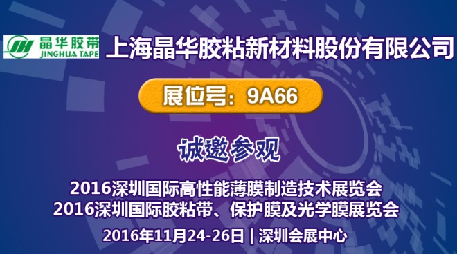2016年11月24日-26日2016深圳國際膠粘帶、防護膜及電子光學膜展會和2016深圳國際性能卓越薄膜生產技術展會將在深圳會展管理中心盛大游戲揭幕。到時候,熱烈歡迎業內同事趕到上海市晶華粘膠新型材料股權有限責任公司坐落于深圳國際展覽中心的9A66號展臺參觀考察與資詢!