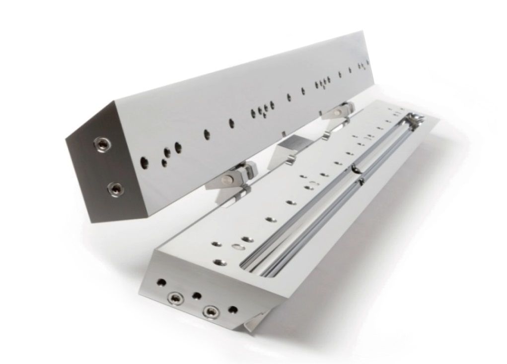 另一款新品間隙涂布模頭是簡易、精細的涂布設備。它與搭配的機器設備組成在一起能主要表現出出色的涂布特性。平穩的、定量分析的涂布液由流料運輸系統軟件經入料口送入模頭。根據內部進氣支管或凹模,流料被勻稱地分派到模頭的全部總寬,而涂布總寬則由所挑選的模身墊圈決策。 間隙涂布模頭具備下列特性: