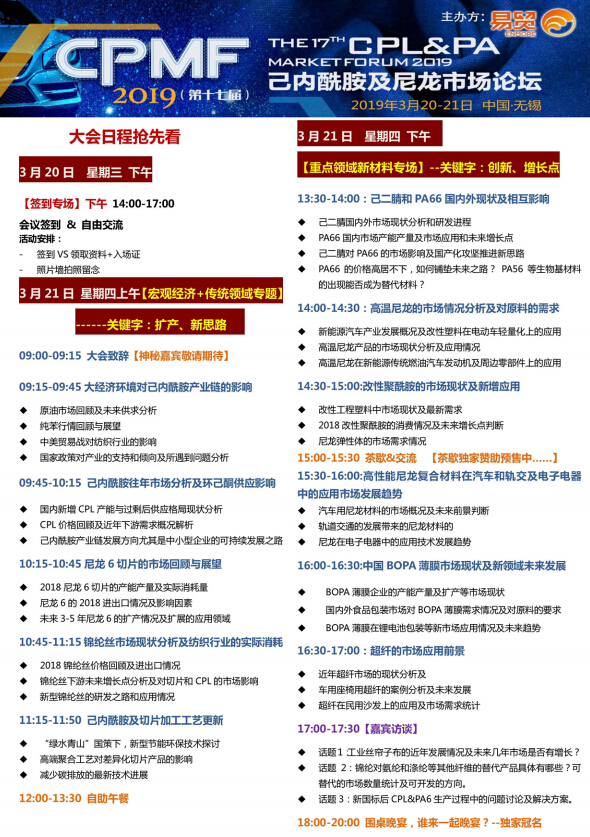 2019(第十七屆)己內酰胺及尼龍市場論壇