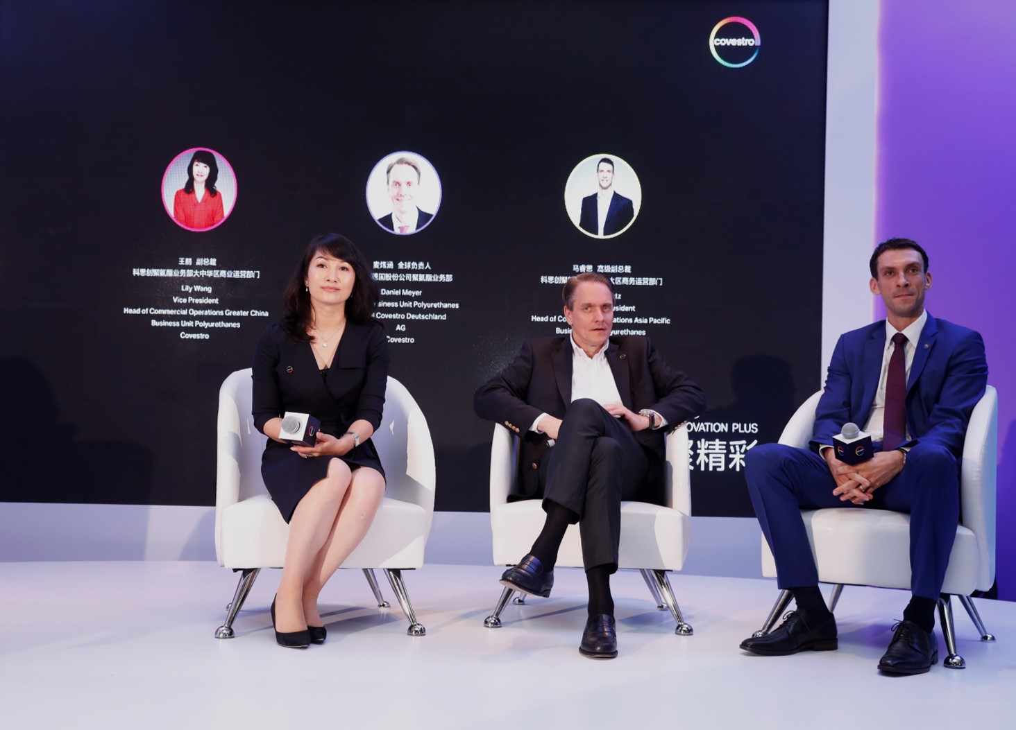 科思創(chuàng)聚氨酯業(yè)務(wù)部全球負(fù)責(zé)人麥煒涵,科思創(chuàng)聚氨酯業(yè)務(wù)部亞太區(qū)高級副總裁馬睿思,科思創(chuàng)聚氨酯業(yè)務(wù)部大中華區(qū)副總裁王麗與媒體熱烈討論化工行業(yè)數(shù)字化轉(zhuǎn)型