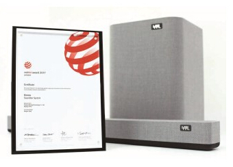 底座則運用了高強度工程塑料搭配石紋設(shè)計,科技感十足。石紋質(zhì)感工程塑料和溫和的布面形成鮮明對比,給觀看者帶來不一樣的視聽感受。北歐簡約的風(fēng)格設(shè)計更讓Omnos獲得了2017年紅點設(shè)計優(yōu)勝獎。
