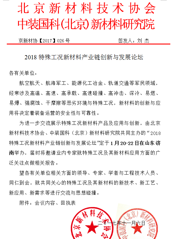 2018特殊工況新資料產(chǎn)業(yè)鏈創(chuàng)新與開展論壇