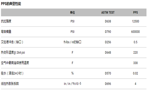 良好的拉伸強度和彎曲模量以及良好的電性能。玻璃纖維填充PPS產(chǎn)生良好的熱變形,而碳纖維填充的PPS更好地進行尺寸穩(wěn)定性和剛度。PPS在PTFE潤滑時會產(chǎn)生良好的磨損和低摩擦系數(shù)。