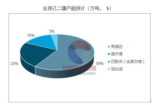 英威達采用的是丁二烯法,而奧升德和日本旭化成采用的丙烯腈法成本比丁二烯法高約 800 美金/噸。鑒于成本的差異,目前市場上可流通的己二腈主要是英威達提供,占據了全球 60%市場份額,奧升德占據 23%,巴斯夫占據 15%。