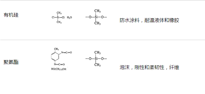 聚乙烯 CH 2 = CH 2 -CH  -CH 2 - 最常見的聚合物。用于袋子,電線絕緣和擠壓瓶子