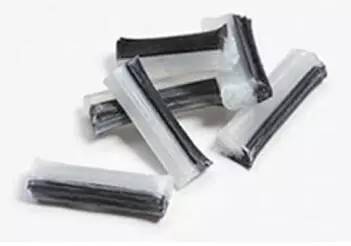 圖1:12 mm長的混和長夾層玻璃和碳纖維復合型顆粒。