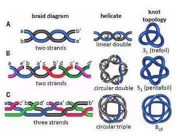 在幾何中,扭結是指三維空間中不與自身相交的閉合曲線。自然界中已知存在超過60億種不同扭結,但人類迄今僅成功利用小分子合成3個扭結。英國曼徹斯特大學化學家David A. Leigh成功合成了第四種分子結——819扭結。819扭結有8個交叉,包含192個原子,寬約20納米,具有手性。這是迄今最復雜、最牢固的人工分子結。這一突破對于編織更復雜的分子結、在分子水平上研究分子結等具有重要意義。